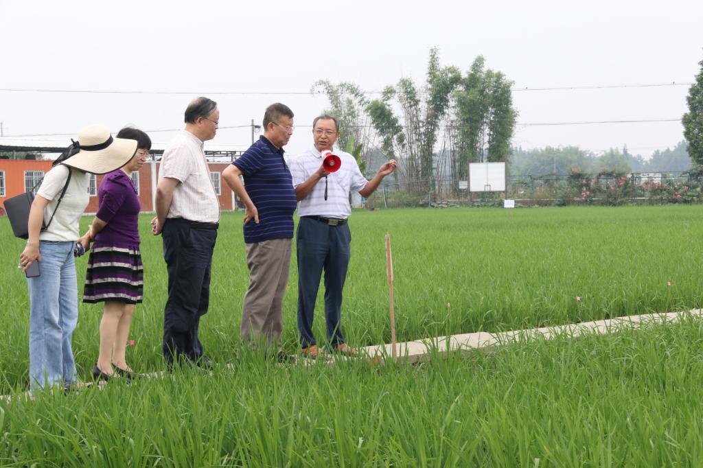 在农学院水稻病害课题组的试验田,黄富教授介绍了被农业部确认为超级稻的宜香优2115的种植推广情况。宜香优2115连续16年次被遴选为国家、省级主导品种,已连续多年成为西南稻区年推广面积最大的品种,获评全国“最受喜爱的十大优质稻米品种”、入选“全国十大优质籼型超级稻品种”、“2020中国农产品百强标志性品牌”,已累计推广种植1500余万亩,创社会经济效益60多亿元,为水稻产业供给侧结构性改革、精准扶贫、农民增产增收发挥了重要作用。