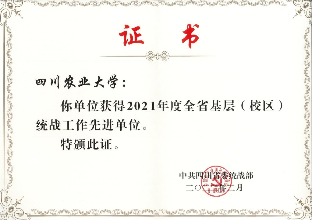 2月14日至15日,四川省统战部长会议在蓉召开,省委统战部对全省基层统战工作先进单位进行表彰,我校荣获“2021年度全省基层(校区)统战工作先进单位”荣誉称号。