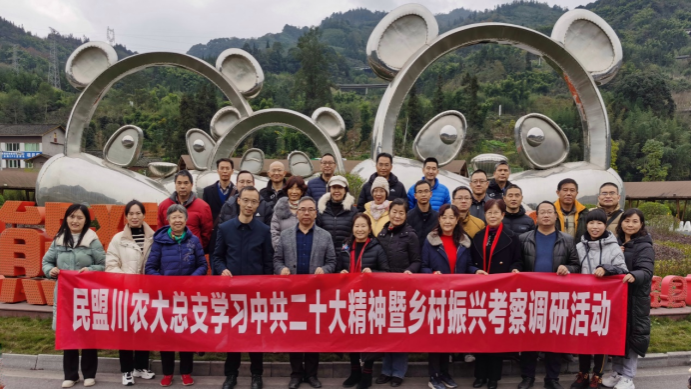 随后,大家前往龙苍沟镇陶家坝,参观考察大熊猫国家公园南入口社区“貊貊家园”建设情况,调研乡村振兴产业发展情况,并集体学习中共二十大精神及中央统战工作会议精神。会议强调,要将此次考察学习成果有效转化为参政履职的强大动力和生动实践,推动民盟川农大总支工作提升到一个新高度、迈上一个新台阶、展现出一个新气象。要认真贯彻落实中共二十大精神,加强“盟雅合作”,积极发挥民盟特色优势,以科技服务荥经县经济发展,让党的二十大精神走深走实、落地见效。