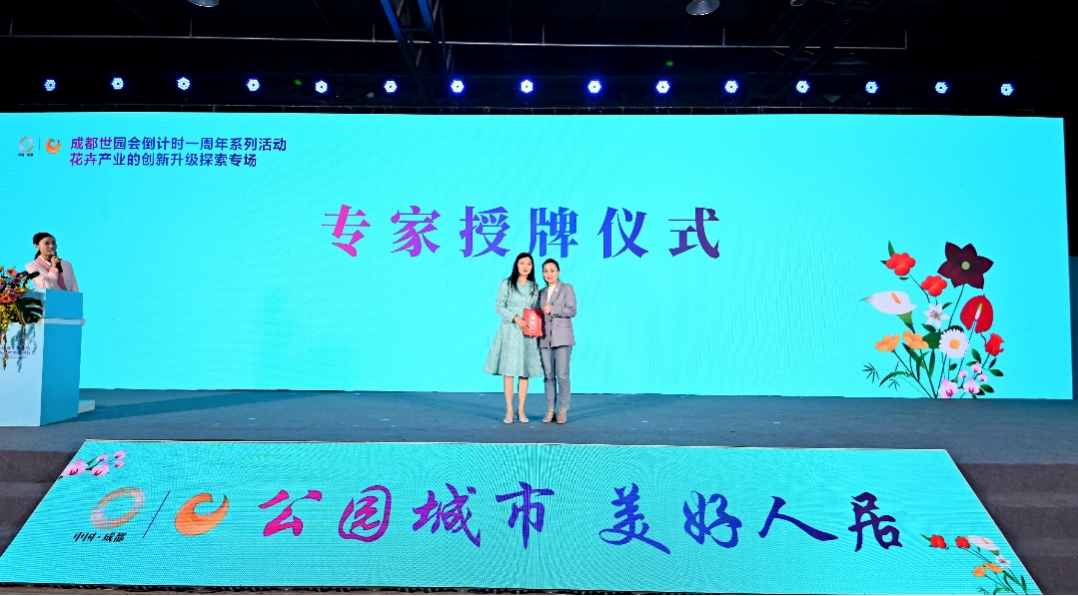 会上,成都市花卉协会为表彰在四川花卉新品种研发推广,特色品种保护等工作中做出重要贡献的专家,设定并聘任“‘川花’新品种研发与推广指导专家”,以期发挥专家引领示范优势,助力“川花”特色品种保护开发及新品种研发和推广。高素萍教授获聘为此项殊荣的首位专家。