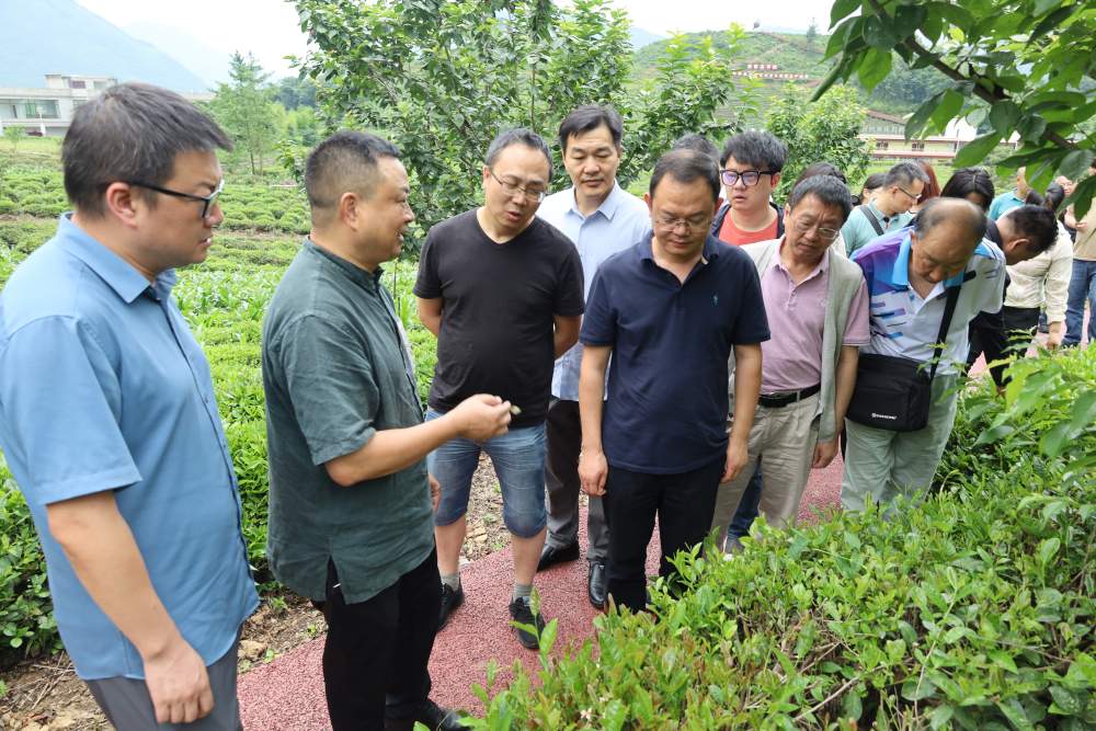 在北川县擂鼓镇盖头山茶叶主题公园,一行人现场参观了由学校无党派代表人士杜晓教授指导的苔子茶生产基地,目前该基地已发展成为集“采茶、制茶、品茶、购茶、茶艺、茶食、茶宿、茶文化”为一体的羌茶部落。北川苔子茶作为国家地理标志产品,现已成为北川支柱农业产业之一,看着3700余亩郁郁葱葱的茶园,以及亲身参与采茶、制茶体验,大家更加深入了解到了学校党外专家如何运用专业知识为地方产业进行科技赋能,进而带动老百姓脱贫致富的感人故事,也更加坚定了要以实际行动助推乡村振兴的理想与信念。
