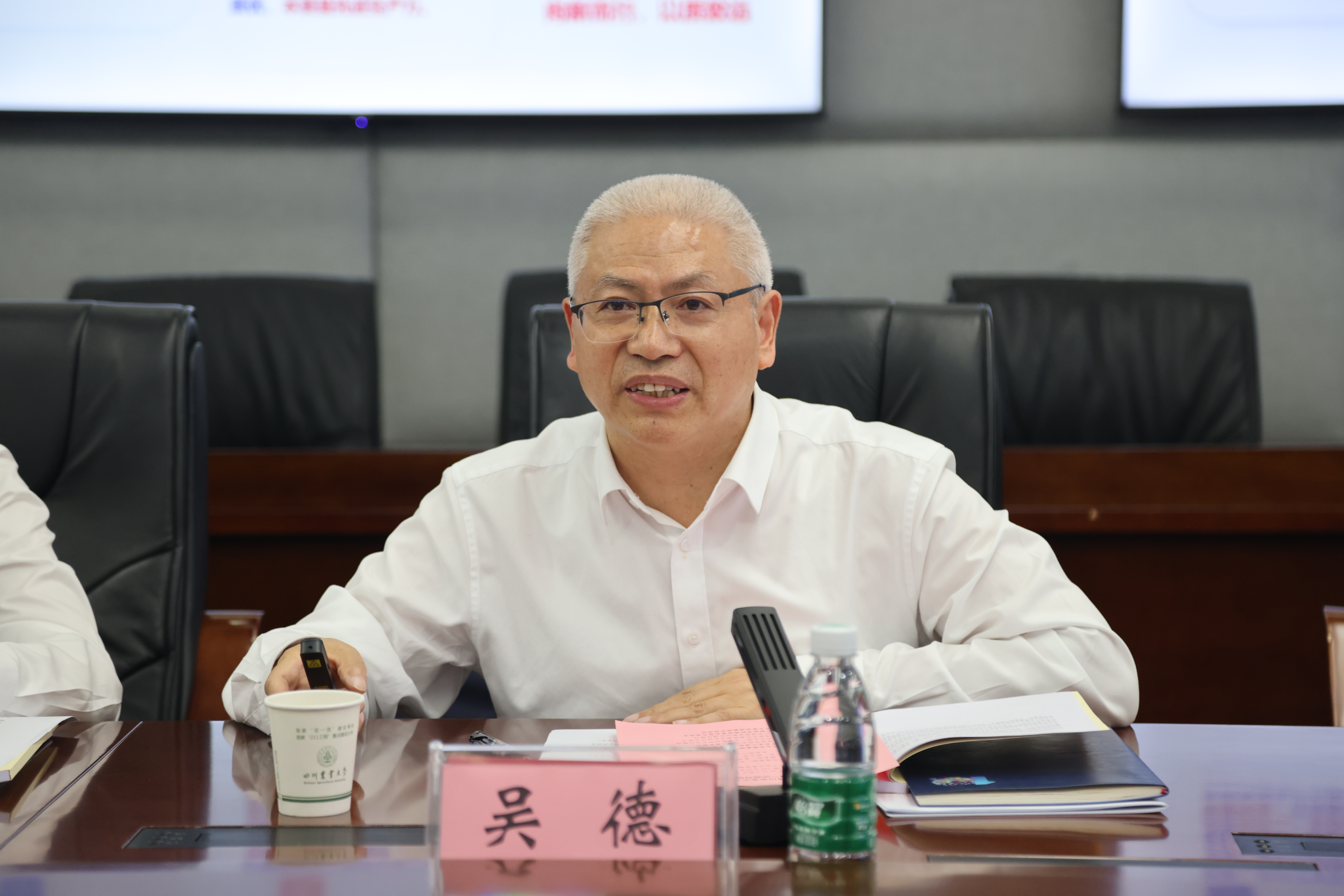 吴德作为全国人大代表,结合自己今年的“两会”参会经历和近期重点工作,从大会主要内容、重要讲话精神、大会重要成果、四川代表团履职情况、贯彻落实本次大会精神工作要求等五个方面全面、立体、生动地传达了全国“两会”精神。他要求,全面贯彻落实“两会”精神,要更好地服务农业新质生产力提升,以人才能力、基础条件能力、科研管理能力的提升推动科技创新能力提升,促进传统农业产业升级、催生未来农业产业和新型产业、促进数字技术与实体经济深度融合、推动农业现代化服务业发展,为推进乡村全面振兴和农业强国做出更多川农大的贡献。他希望,各位代表要切实提高政治站位,与中国共产党保持同心同向、同心同德,充分了解国家与学校发展形势,立足工作岗位,发挥专业优势,以今年本科教育教学审核评估为契机,切实做好学生高质量培养工作,同时为学校高质量发展持续献计献策。