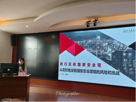 为深入学习贯彻中共二十大二中、三中全会精神,推动盟务工作再上新台阶,民盟雅安市委会于9月5日举办了2024年第三期“雅州盟员大讲堂”,来自雅安民盟各基层组织的40位盟员参加本期大讲堂,民盟雅安市委会专职副主委洪兵、秘书长龙晓勇,民盟雨城区委会主委、区政协副主席廖体锦出席大讲堂。我校民盟盟员罗敏、杨敏、薛珂、肖洪涛参与了报告会,罗敏为雅安盟员带来了题为“践行总体国家安全观--从高校角度看国家安全面临的形势与挑战”的专题报告。