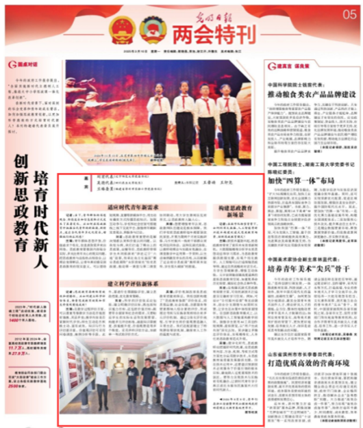 光明日报以《创新思政教育 培育时代新人》为题,围绕“新时代青年思政教育”等话题与吴德展开对话。吴德表示,要增强新时代青年对思政教育的认同,思政教师队伍建设是根本保障,评价机制改革是思政教育质量的保证,数字化教育教学工具是重要支撑,三位一体方能破解“教师照本宣科、学生低头刷屏”的思政教育困境。