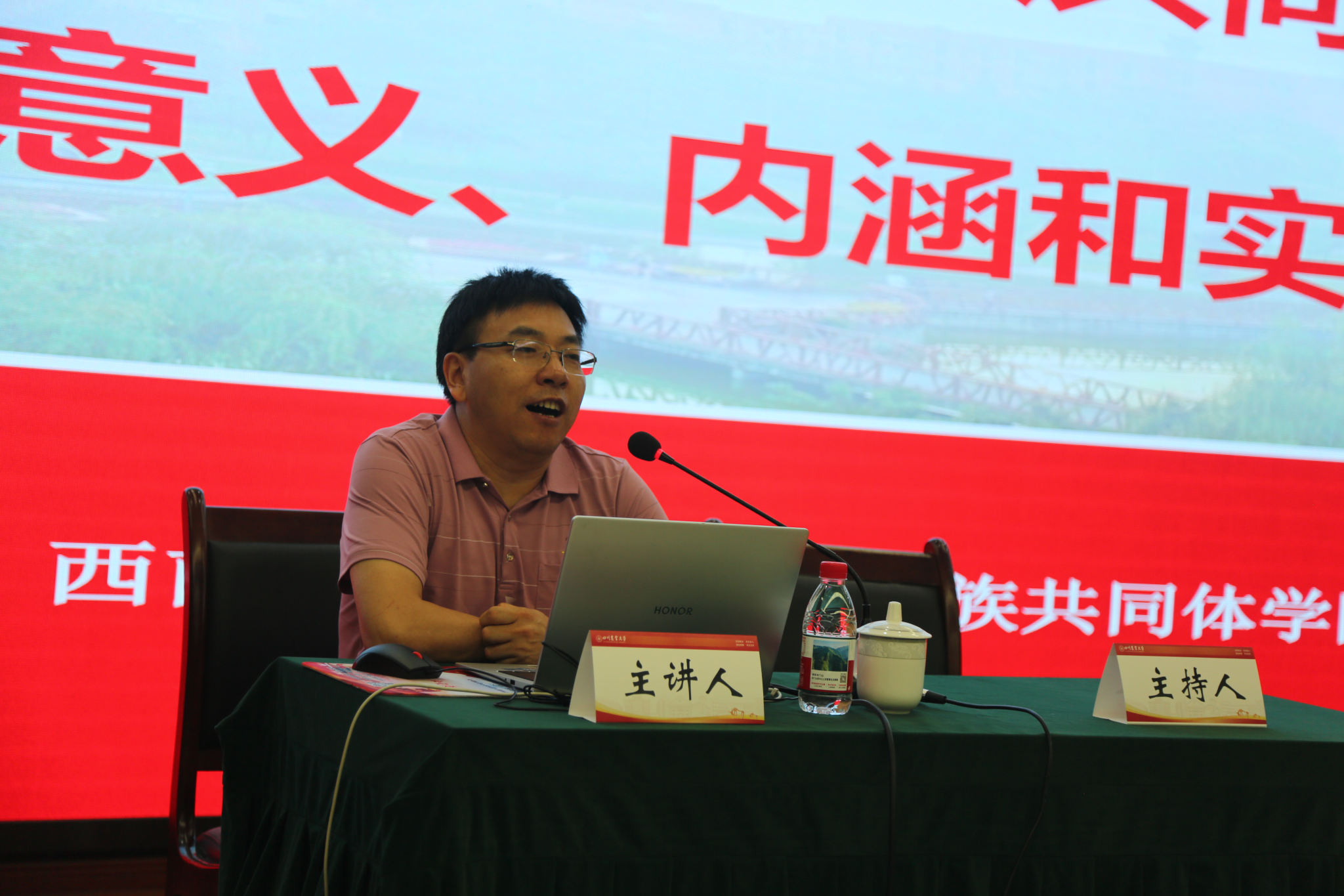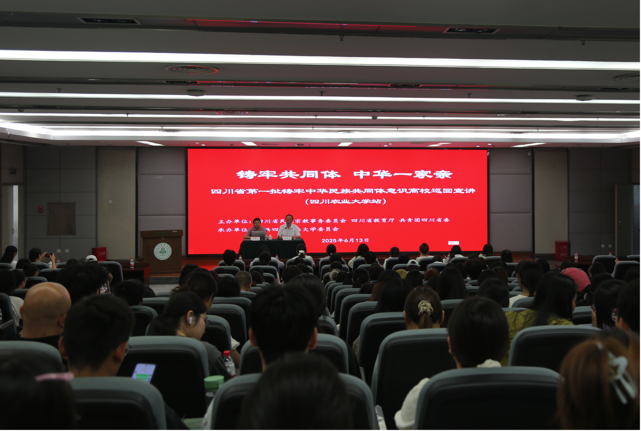 6月13日,由四川省民族宗教事务委员会、四川省教育厅、共青团四川省委联合主办的四川省第一批铸牢中华民族共同体意识高校巡回宣讲走进我校。省铸牢中华民族共同体意识高校巡回讲堂三年行动宣讲团成员、西南民族大学中华民族共同体概论教研室主任陶斯文教授作宣讲报告。校党委副书记张强出席并主持,校党委常委、统战部部长侯永翠,校机关党委教职工、马克思主义学院思政课教师、成都校区各院所师生代表等260余人聆听了报告。