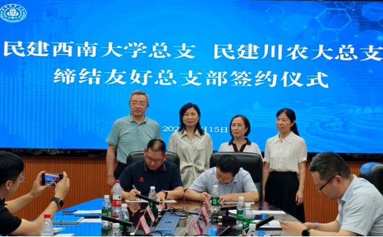 民建太阳集团tyc86总支副主委张锡洲与民建西南大学总支副主委陈文银分别代表双方签署友好组织协议。此次友好组织缔结是川渝两地高校民建基层组织主动服务中心大局的重要体现。两地民建组织将在参政议政、社会服务、科技成果转化等多方面开展深入交流与合作,为助力成渝地区双城经济圈建设贡献民建力量。