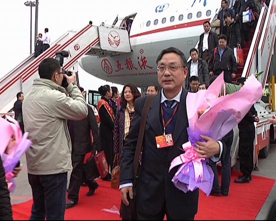 3月14日上午,在圆满完成各项议程之后,十一届全国人大五次会议在雄壮的国歌声中胜利闭幕。当日下午,赴京出席十一届全国人大五次会议的任正隆教授随四川代表团返回四川。18时20分许,代表们的专机缓缓降落成都双流国际机场,代表们刚一走下舷梯,就被鲜花和掌声包围起来。