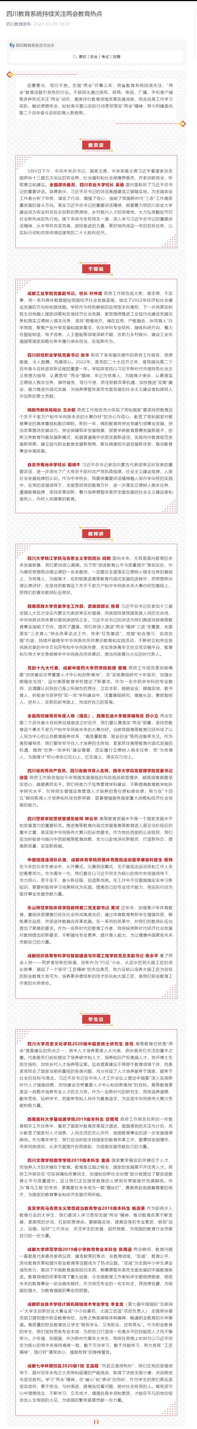 (四川教育发布)四川教育系统持续关注两会教育热点