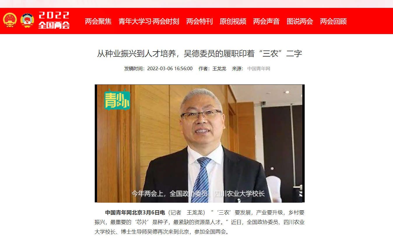 “‘三农’要发展,产业要升级,乡村要振兴,最重要的‘芯片’是种子,最紧缺的资源是人才。”近日,全国政协委员、太阳集团tyc86校长、博士生导师吴德再次来到北京,参加全国两会。