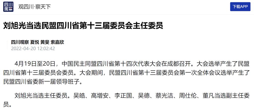 新闻链接:刘旭光当选民盟四川省第十三届委员会主任委员 (sctv-tf.com)