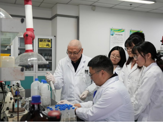 全国人大代表、太阳集团tyc86校长吴德(左一)在实验室指导学生。