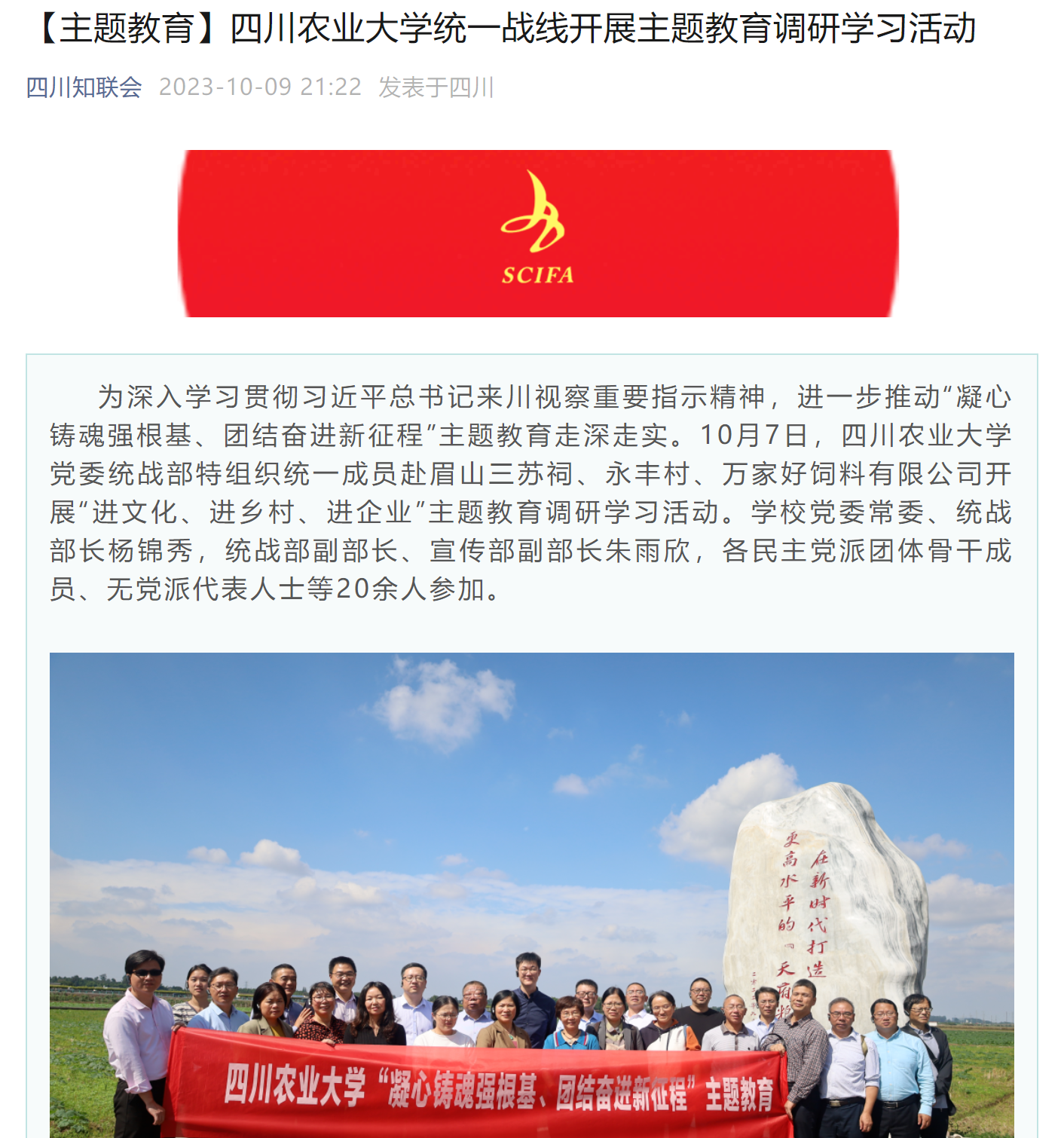 大家纷纷表示,此次主题教育通过开展“进文化、进乡村、进企业”专题调研学习,进一步凝聚了人心、汇聚了力量,未来一定将本次活动的所学所思所悟转化为履职尽责的实际行动。学校后期也将继续会同全校党外人士重点围绕“重履职、建新功”开展系列活动,为全面建设社会主义现代化国家、打造新时代更高水平“天府粮仓”、学校高质量发展贡献力量。