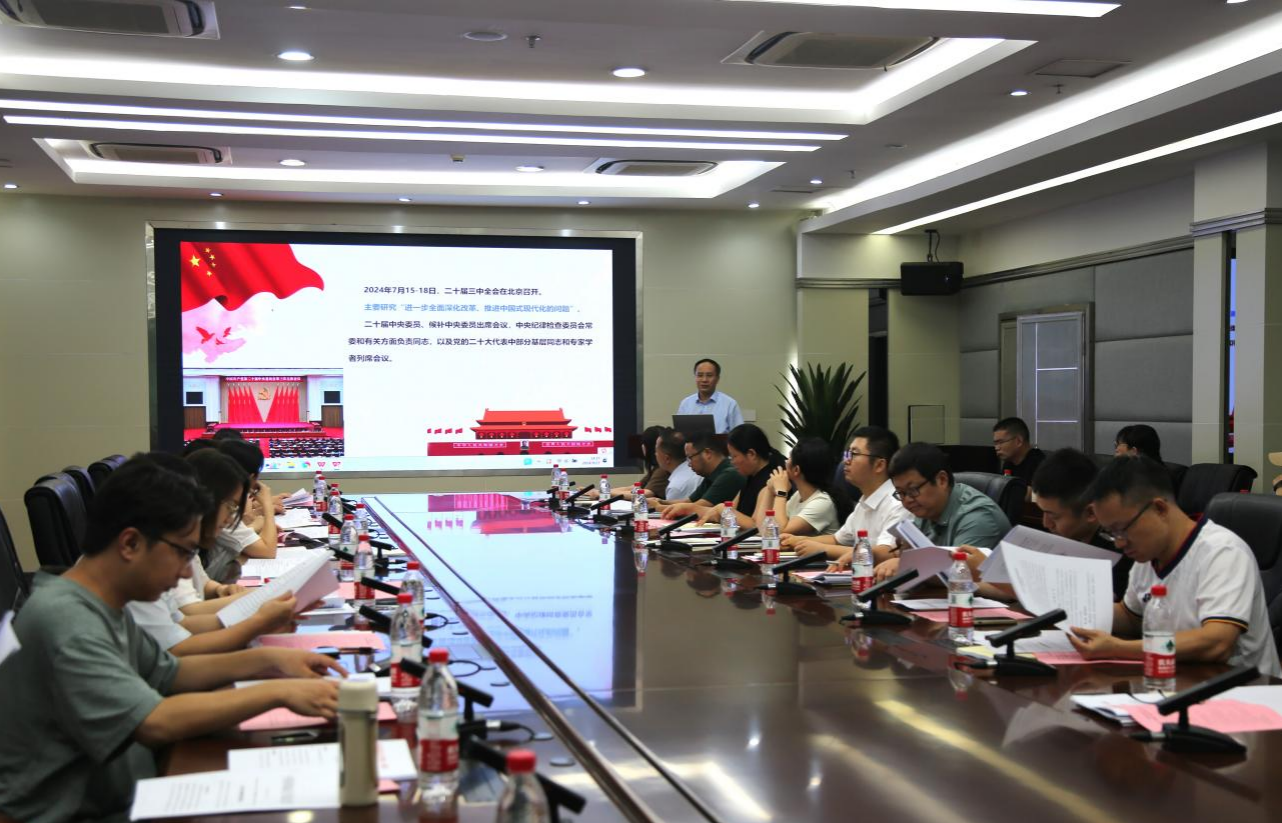 蒋远胜从“会议基本情况”“做到‘五个深刻把握’”“以深化经济体制改革为牵引”“加强党的领导,强化企业改革实效”四个方面对党的二十届三中全会进行了深入解读。强调《中共中央关于进一步全面深化改革、推进中国式现代化的决定》对进一步全面深化改革、推进中国式现代化作出系列部署,既是党的十八届三中全会以来全面深化改革的实践续篇,也是新征程推进中国式现代化的时代新篇,是党的历史上又一重要纲领性文献。