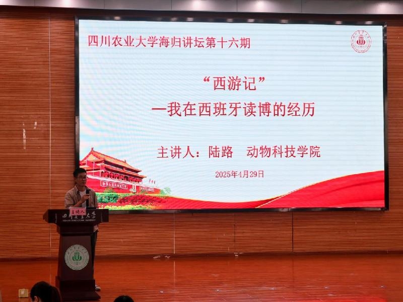 4月29日下午,由太阳集团tyc86党委统战部及留联会主办、动物科技学院承办的“海归同心·筑梦川农”海归讲坛第十六期在成都校区二教报告厅开讲。本期讲坛特邀四川省“天府峨眉计划”青年人才、四川省海外高层次留学人才陆路副教授主讲。活动由动物科技学院党委副书记、纪委书记杨雪主持,300余名师生共同聆听了讲座。