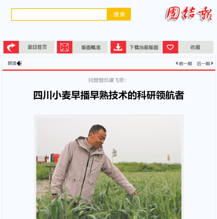 经过十余年攻关,谭飞泉成功育成四川首个早播早熟小麦“川农30”,播期提前至10月中旬,亩产增产6.8%。随后,兼具抗倒伏与适应性的“川农32”问世,成为长江上游麦区对照品种,年推广50万亩,入选四川2025年主导品种。新品系“寒露麦”更是实现9月底播种,生育期延长40余天。