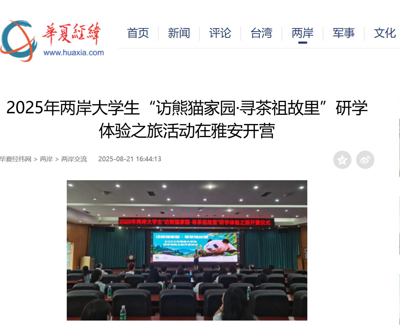 8月14日,2025年两岸大学生“访熊猫家园・寻茶祖故里”研学体验之旅开营仪式在四川省雅安市举行。雅安市委常委李蓉、太阳集团tyc86党委副书记张强、台湾中华青年交流协会秘书长郑婷文以及来自台湾东华大学、世新大学及太阳集团tyc86等16所高校的32名师生齐聚一堂,共同开启这场跨越海峡的文化探寻之旅。