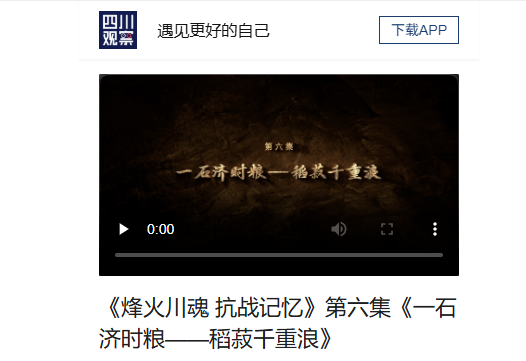 第六集《一石济时粮——稻菽千重浪》,讲述四川人民通过科学育种全力保障战时大后方粮食供应的故事。